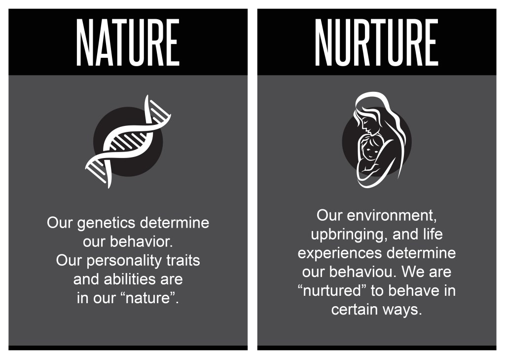 Another interesting debate discussed is Nature versus Nurture. Nature is influenced by genetic inheritance and other biological factors. Nurture is the influence of external factors after being born, e.g., the product of exposure, life experiences and learning. The nature-nurture debate is concerned with the relative contribution that both influences make to human behavior, such as personality, cognitive traits, temperament and psychopathology. Given that heredity and environment both influence the person we become, which is the more important?