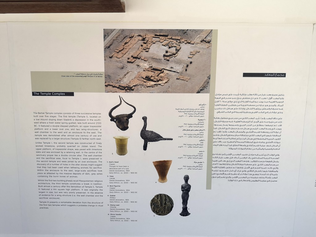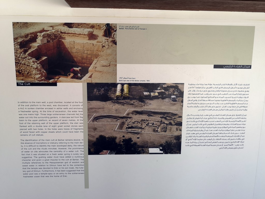 “The Barbar Temple is actually three temples, one succeeding the other on the same site. The two oldest temples are terraced with a central platform above an outer oval platform, an architectural feature comparable with Sumerian temples. The Barbar Temples, built in the third and second millennia BC, are among the most remarkable architectural survivals of the ancient world and are without parallel in the region.”