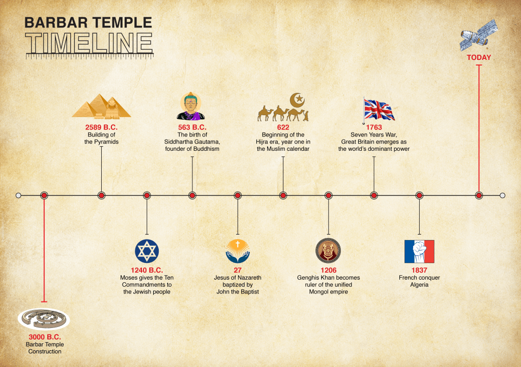 One way of making the Barbar Temple less unnoticeable, is through marketing (Social media, tourists guides leaflets on airports etc.). The timeline is a piece of information that makes the site more interesting, therefore it should be very prominent inside the site itself.