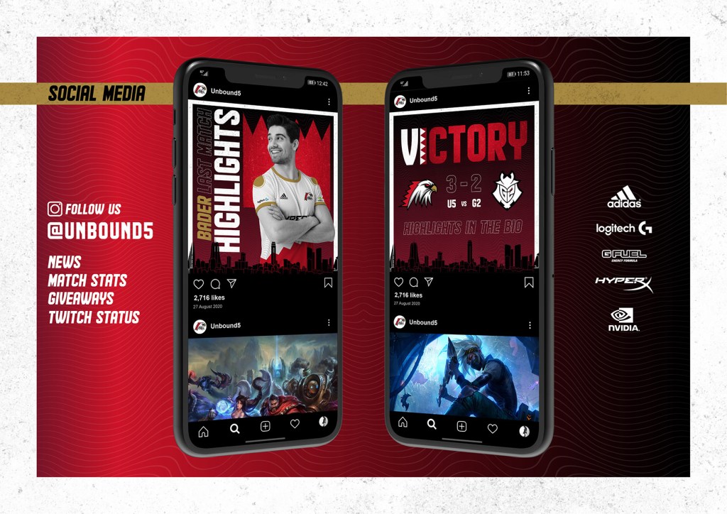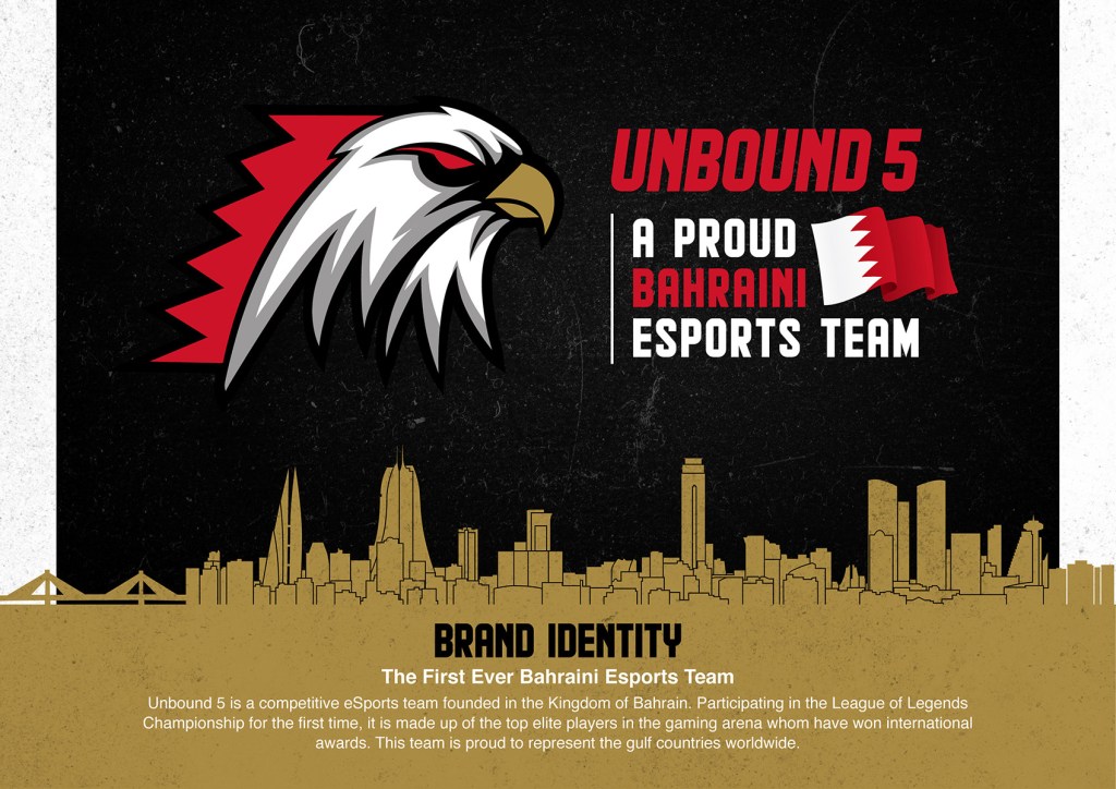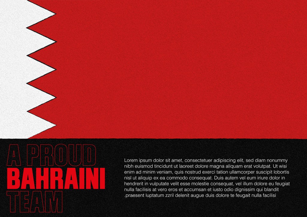 Midway in my several attempts, I was convinced with the logo where the digit 5 was the hero. Then I started to design other collaterals according to the that. However, after finishing the set of adaptations, I still wasn’t satisfied with the result. The logo and colors didn’t feel strong enough to represent a strong and competitive team. I couldn’t visualize that feeling while using the 5 as the hero for the logo. At that moment, I realized that I need to test other options and play further with the logo sketches. I felt that my logo must be bold and daring. The collaterals looked really dull and didn’t utilize the colors that represent Bahrain. The issue I had in the beginning of the development of the identity was the colours, typeface and layout composition overall. It had an American feel to it, and it was not feeling patriotic like it should be.