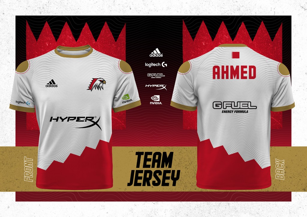 Despite not being 100% happy with the logo, I am somewhat satisfied with the presentation. I am utilising the colors of Bahrain, the red, white, black and gold. In addition to that, the hero of the logo is the falcon. Now the logo shows power, courage, boldness, and patriotism. The logo is culturally and emotionally relevant to Bahrainis. Even the name has a meaning to it. The jerseys are bold and fresh in colors.