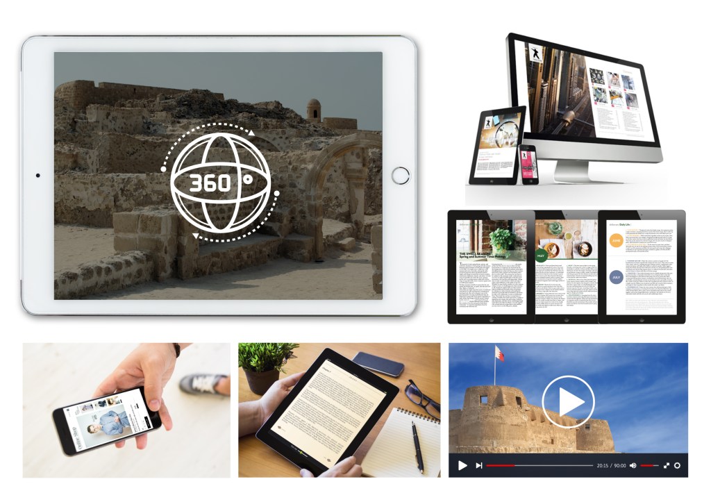 For this week’s workshop challenge, I thought of a coffee table book, then decided to change my medium to an e-brochure. I believe than an e-brochure allows the reader to have access to an interactive 360-degree photo and videos along with static images of the Bahrain Fort site. The idea is to have a responsive interactive e-brochure that can be visualized on multiple devices.